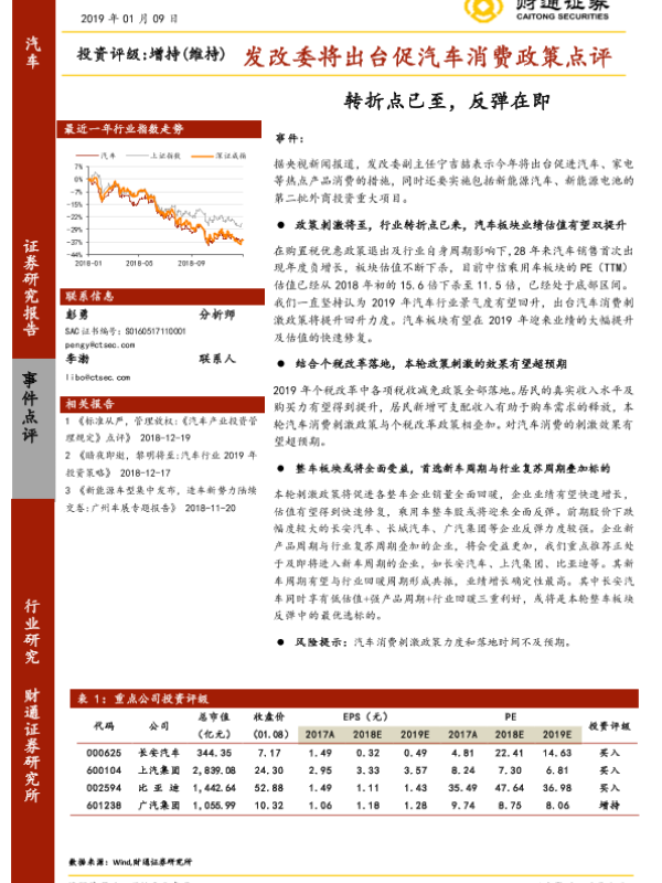 【财通证券】【20190109】发改委将出台促汽车消费政策点评:转折点已至,反弹在即-2页 行业研究