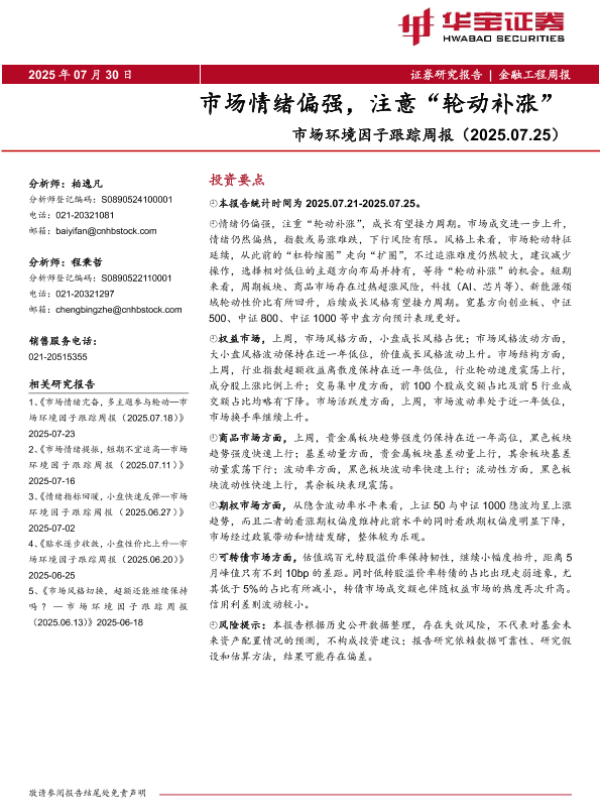 【华宝证券】【20250730】市场环境因子跟踪周报-8页 证券期货研究报告