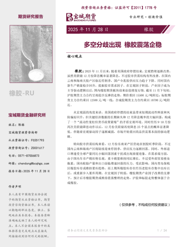 【宝城期货】【202511】橡胶月报_多空分歧出现_橡胶震荡企稳-28页 证券期货研究报告