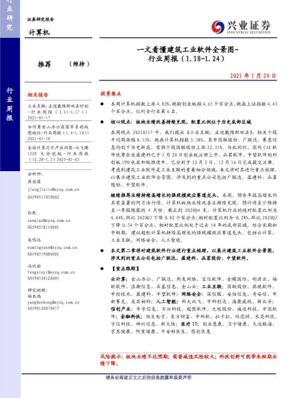【兴业证券】【20210124】一文看懂建筑工业软件全景图-行业周报(1.18-1.24)-26页 行业研究