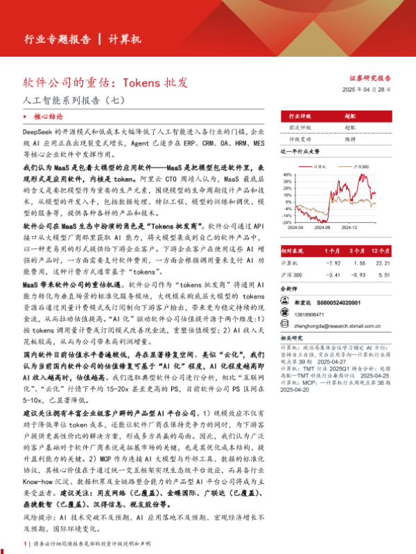 【西部证券】【20250428】计算机行业人工智能系列报告(七):软件公司的重估,Tokens批发-27页 行业研究