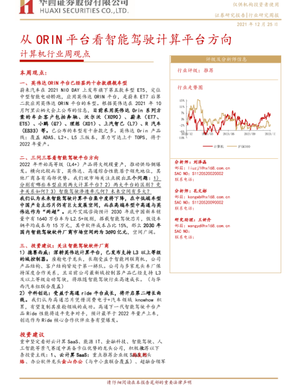 【华西证券】【20211225】20211225-华西证券-计算机行业周观点:从ORIN平台看智能驾驶计算平台方向-26页 行业研究