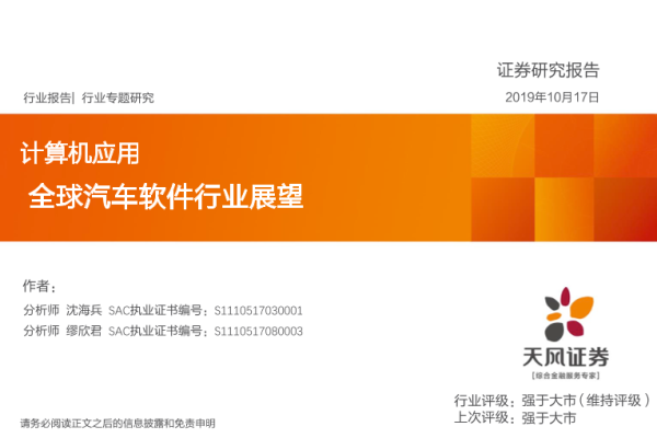 【天风证券】【20191017】全球汽车软件行业展望-33页 行业研究
