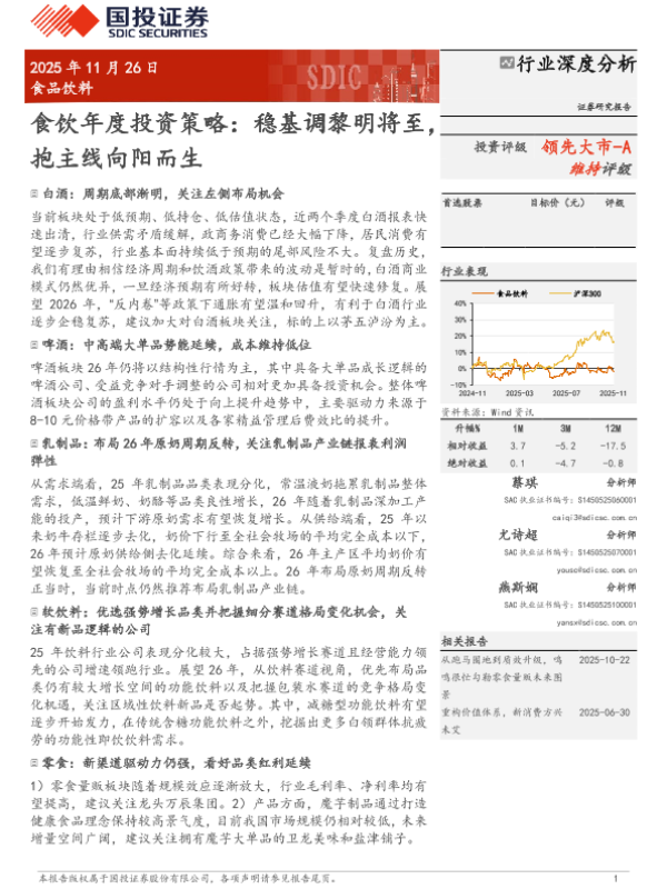 【国投证券】【202511】食品饮料:稳基调黎明将至,抱主线向阳而生-27页 证券期货研究报告