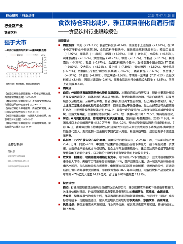 【爱建证券】【202507】食品饮料行业跟踪报告:食饮持仓环比减少,雅江项目催化白酒行情-14页 证券期货研究报告