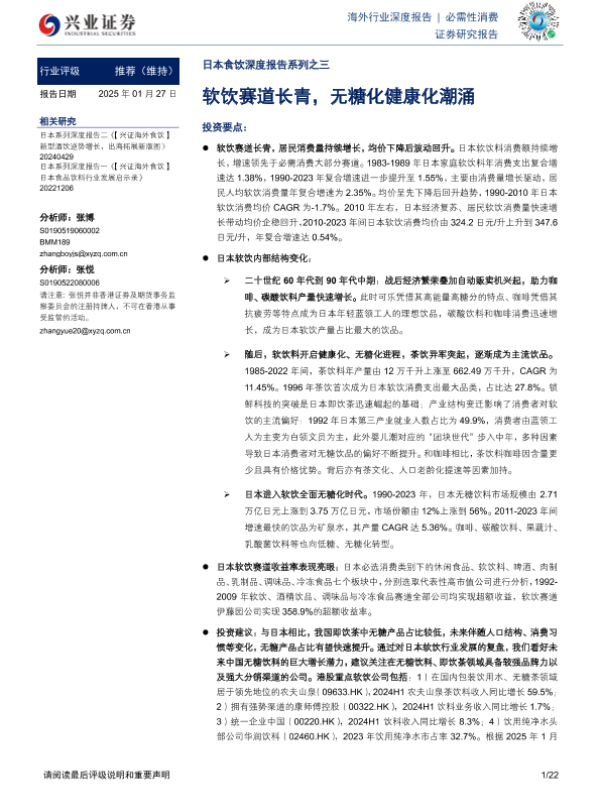 【兴业证券】【20250127】日本食饮深度报告系列之三:软饮赛道长青,无糖化健康化潮涌-22页 行业研究