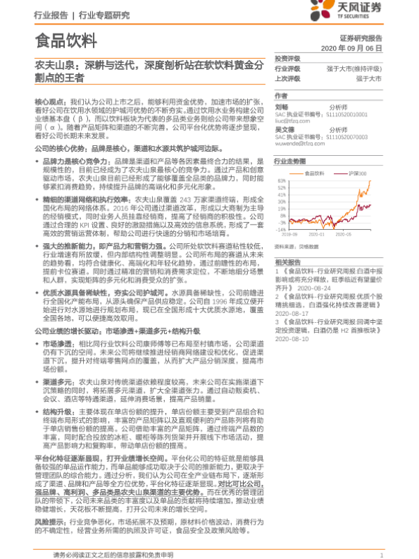 【天风证券】【20200906】食品饮料行业专题研究:农夫山泉:深耕与迭代,深度剖析站在软饮料黄金分割点的王者-44页 行业研究