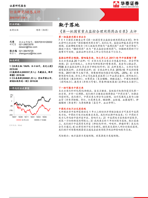 【华泰证券】【20190704】《第一批国家重点监控合理用药药品目录》点评-靴子落地-3页 行业研究