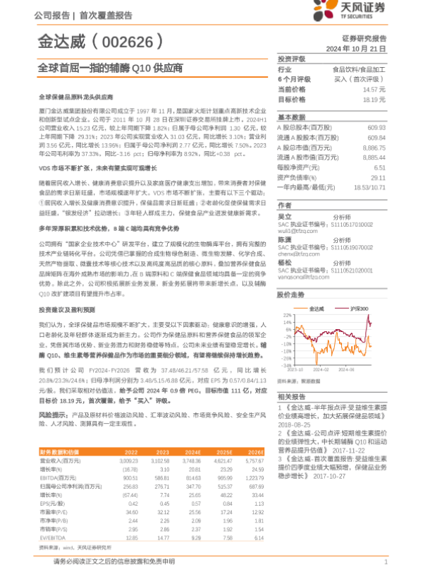 【天风证券】【20241021】金达威(002626)全球首屈一指的辅酶Q10供应商-23页 行业研究