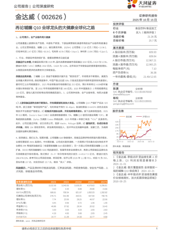 【天风证券】【202510】再论辅酶Q10全球龙头的大健康全球化之路-26页 证券期货研究报告