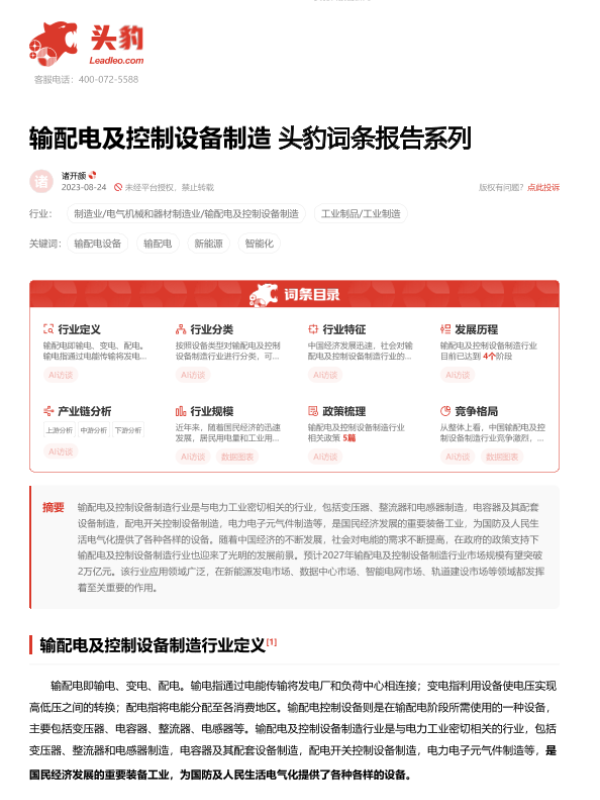 【头豹研究院】【20230824】输配电及控制设备制造 头豹词条报告系列-20页 行业研究