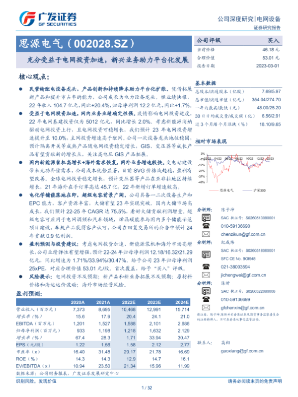 【广发证券】【20230301】思源电气(002028.SZ):充分受益于电网投资加速,新兴业务助力平台化发展-32页 行业研究