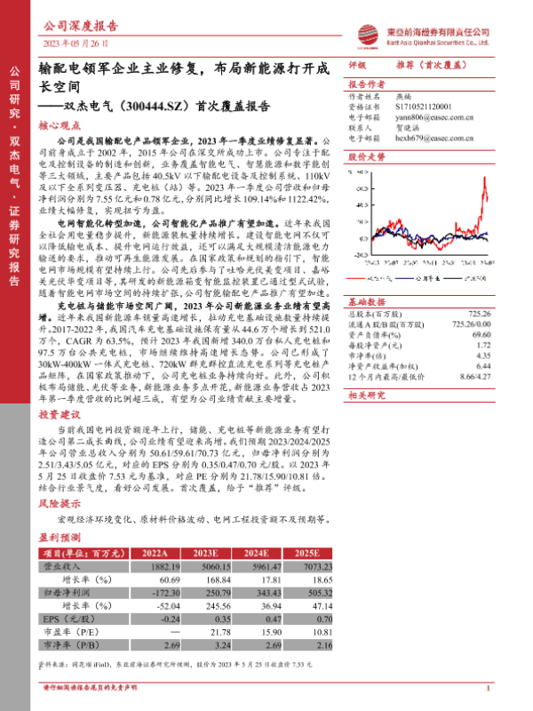 【东亚前海证券】【20230526】双杰电气(300444.SZ)首次覆盖报告:输配电领军企业主业修复,布局新能源打开成长空间-27页 行业研究