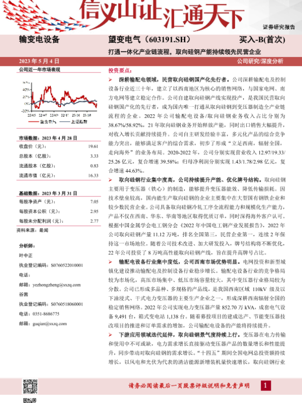 【天风证券】【20230802】深度报告-20230802-天风证券-望变电气-603191.SH-输配电设备+取向硅钢_产业链一体化优势逐步凸显-25页 行业研究
