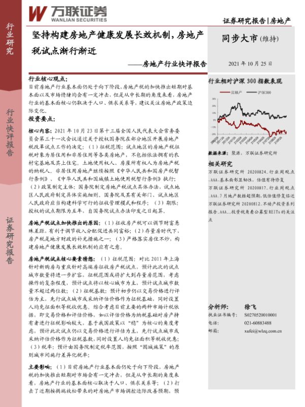 【万联证券】【20211025】坚持构建房地产健康发展长效机制,房地产税试点渐行渐近-3页 行业研究