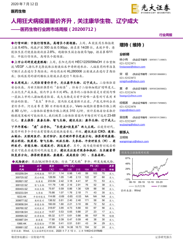 【光大证券】【20200712】医药生物行业跨市场周报:人用狂犬病疫苗量价齐升-34页 行业研究
