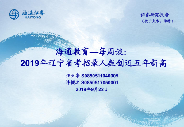 【海通证券】【20190922】2019年辽宁省考招录人数创近五年新高-16页 行业研究