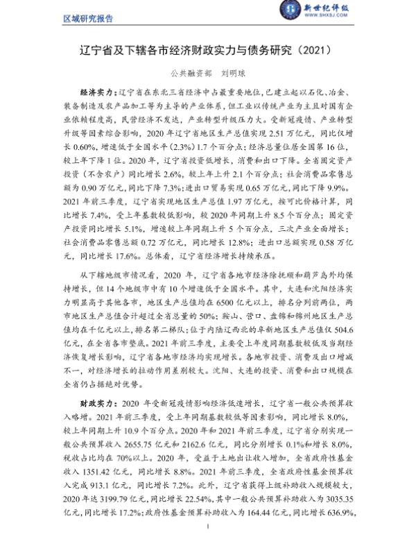 【新世纪评级】【2021】辽宁省及下辖各市经济财政实力与债务研究-25页 行业研究