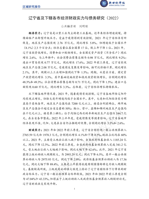 【新世纪评级】【20220101】辽宁省及下辖各市经济财政实力与债务研究(2022)-26页 行业研究