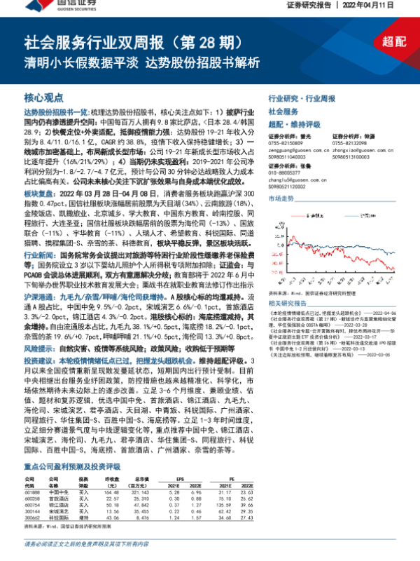 【国信证券】【20220411】社会服务行业双周报(第28期):清明小长假数据平淡 达势股份招股书解析-19页 行业研究