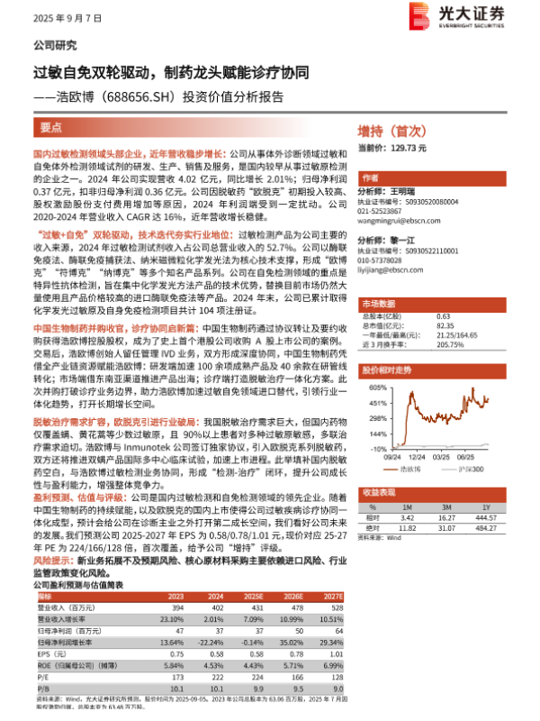 【国元证券】【20230612】20230612-国元证券-浩欧博-688656.SH-首次覆盖报告:过敏自免两翼齐飞,行稳致远进而有为-33页 行业研究