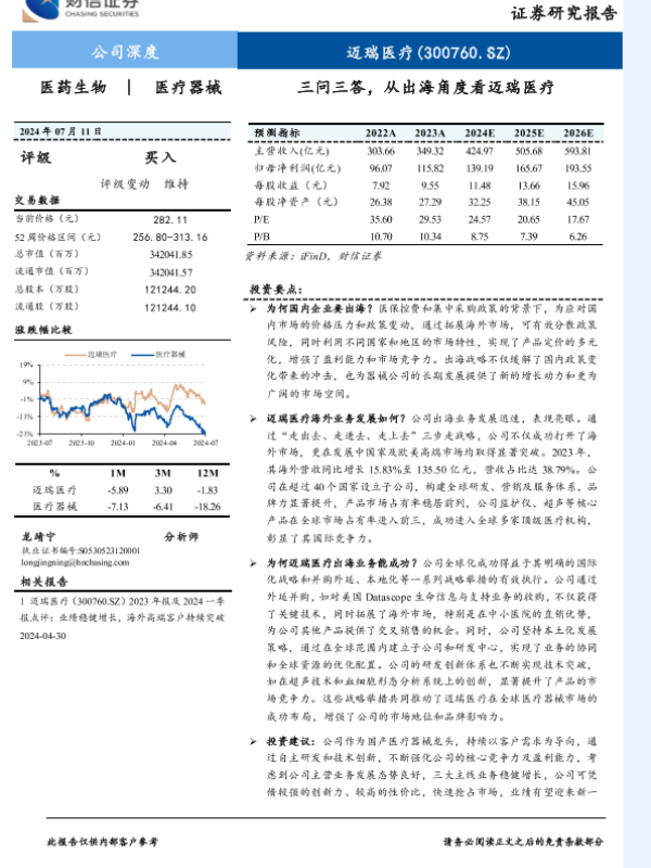 【财信证券】【20240711】三问三答,从出海角度看迈瑞医疗-28页 行业研究