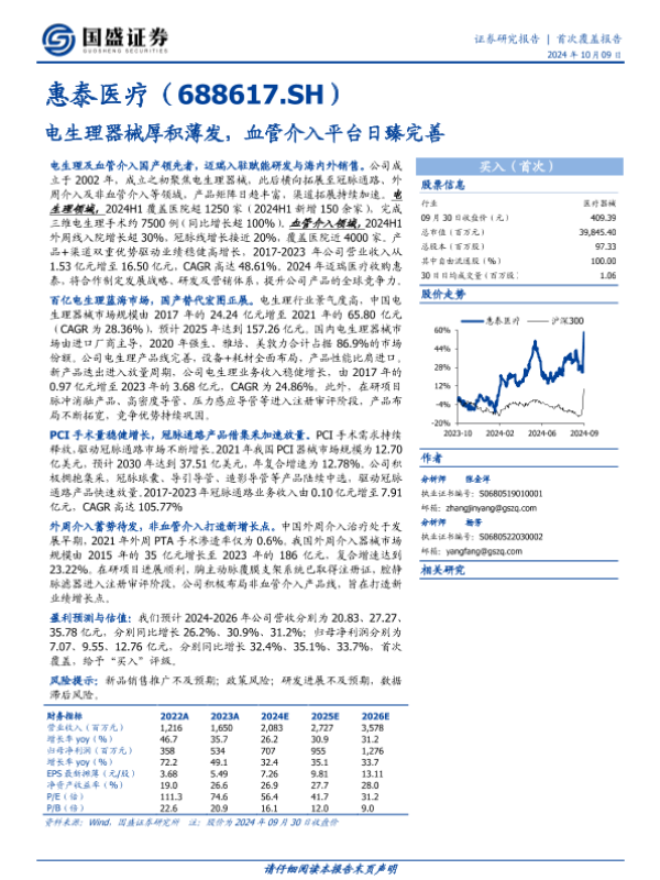 【国盛证券】【20241009】惠泰医疗-688617.SH-电生理器械厚积薄发,血管介入平台日臻完善-43页 行业研究