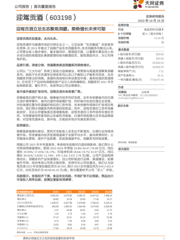 【天风证券】【20221025】迎驾贡酒立足生态聚焦洞藏,乘势增长未来可期-32页 行业研究