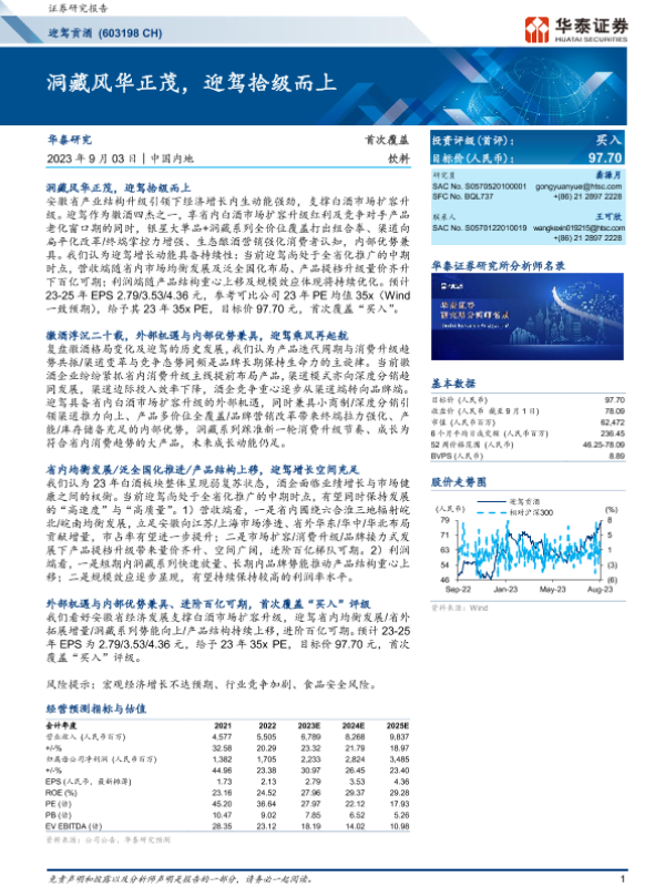 【华泰证券】【20230903】洞藏风华正茂,迎驾拾级而上-27页 行业研究