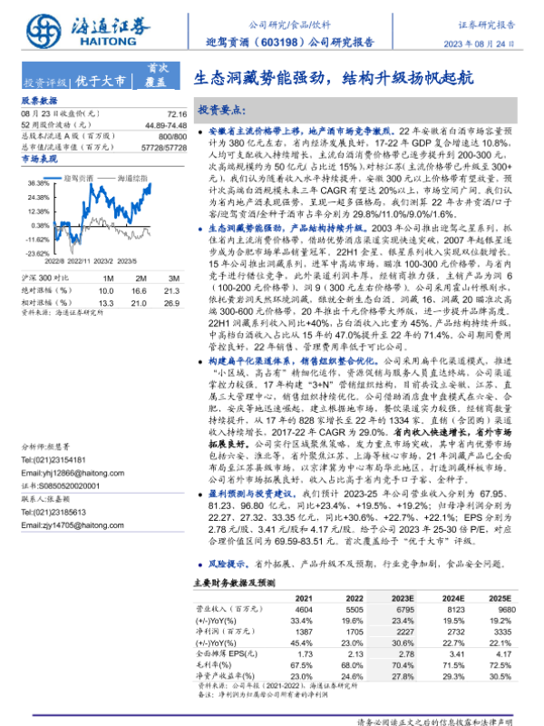 【海通证券】【20230824】迎驾贡酒-603198.SH-生态洞藏势能强劲,结构升级扬帆起航-21页 行业研究