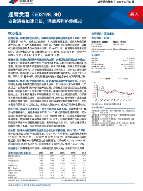 【东吴证券】【20221209】迎驾贡酒-乘风扬帆起,洞藏恰芳华-27页 行业研究