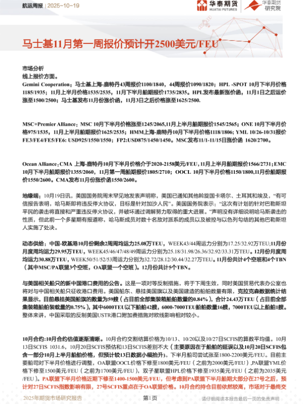 【华泰期货】【202510】航运日报_10月20日SCFIS略超预期_关注马士基11月第一周开价情况-14页 证券期货研究报告