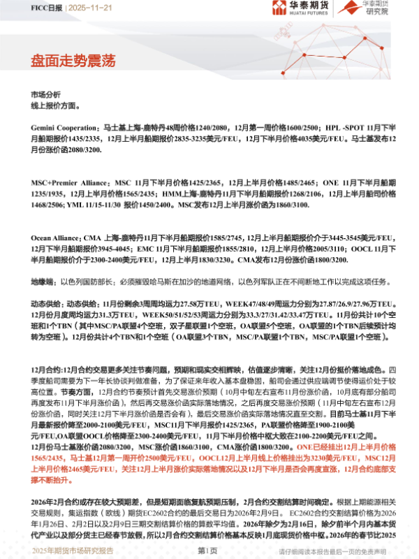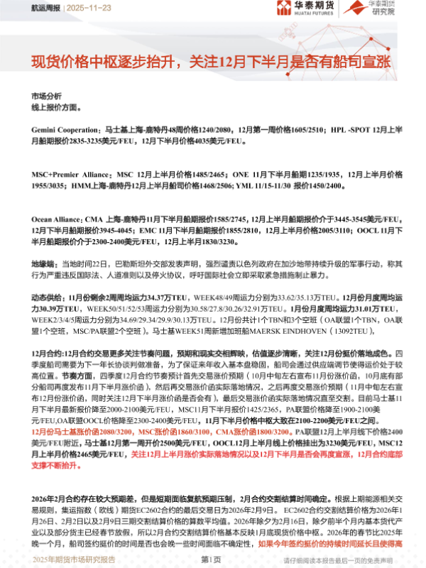 【华泰期货】【202511】航运周报 | 2025-11-23-14页 证券期货研究报告