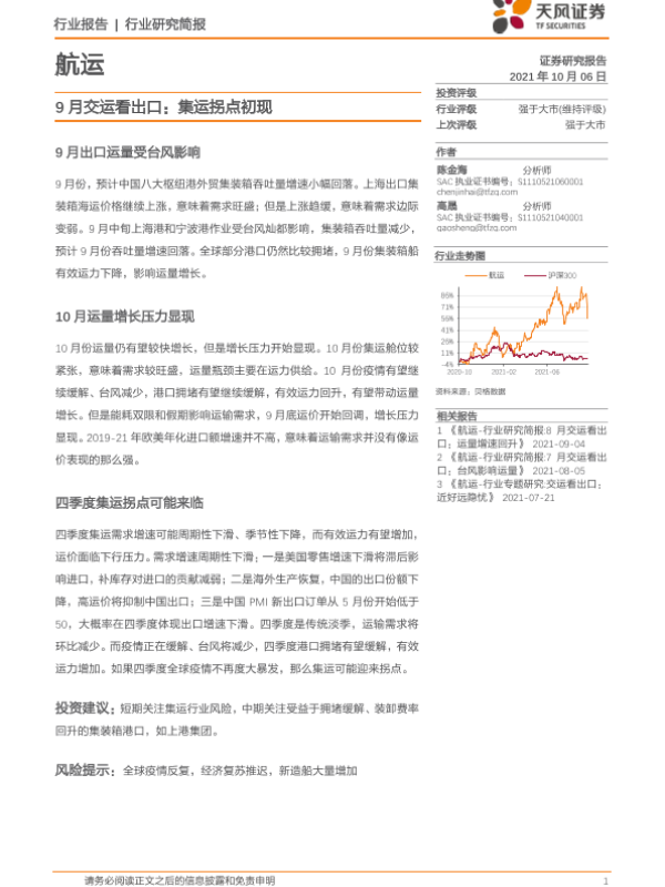 【天风证券】【20211006】9月交运看出口:集运拐点初现-13页 行业研究