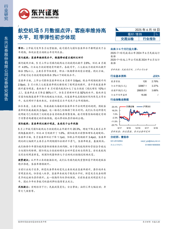 【东兴证券】【20250618】航空机场5月数据点评:客座率维持高水平,旺季弹性初步体现-12页 行业研究