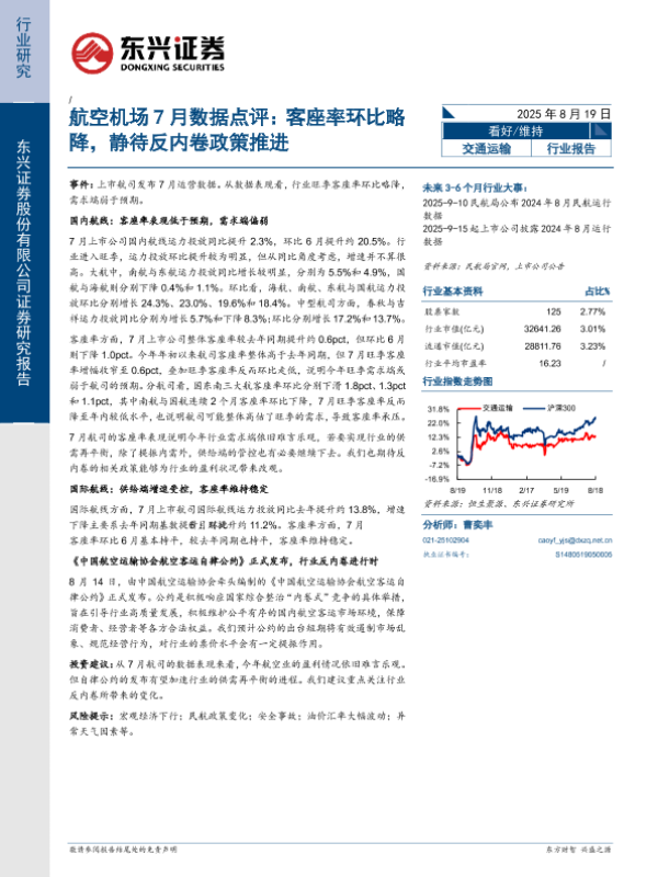 【东兴证券】【20250819】航空机场7月数据点评:客座率环比略降,静待反内卷政策推进-12页 证券期货研究报告