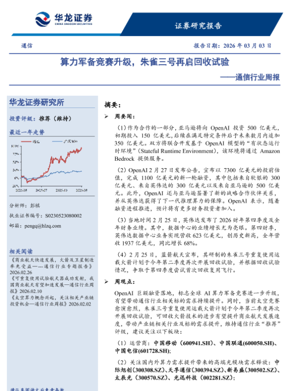 【华龙证券】【202603】算力军备竞赛升级,朱雀三号再启回收试验-8页 证券期货研究报告