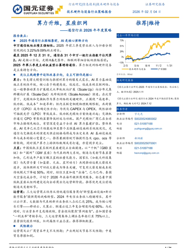 【国元证券】【2026】算力升维,星座织网——通信行业2026年年度策略-24页 证券期货研究报告