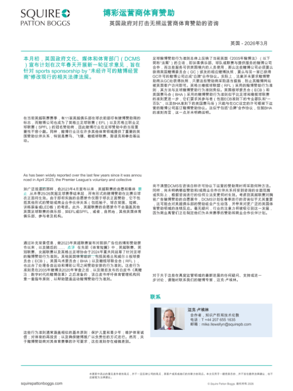 【Squire Patton Boggs】【202603】博彩运营商体育赞助:英国政府对打击无照运营商体育赞助的咨询-1页 政策文件
