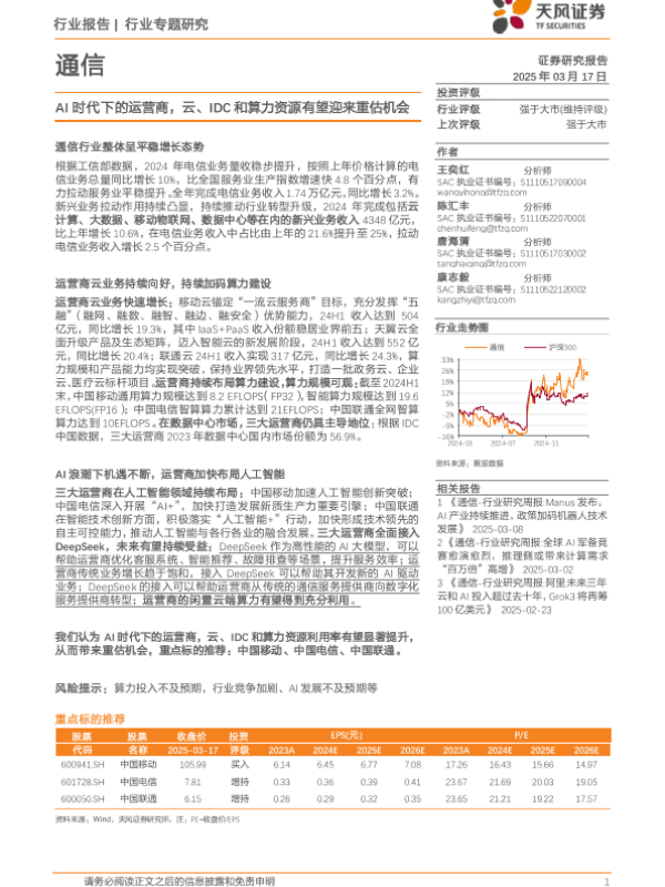 【天风证券】【20250317】AI时代下的运营商,云、IDC和算力资源有望迎来重估机会-15页 行业研究
