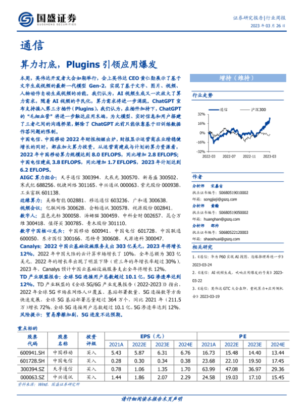 【国盛证券】【20230326】通信行业周报:算力打底,Plugins引领应用爆发-18页 行业研究