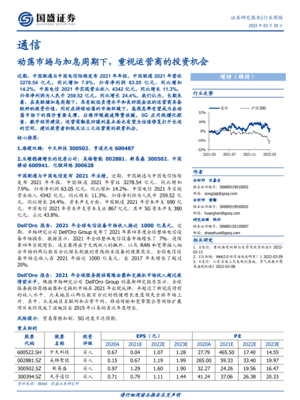 【国盛证券】【20220320】通信行业周报:动荡市场与加息周期下,重视运营商的投资机会-11页 行业研究