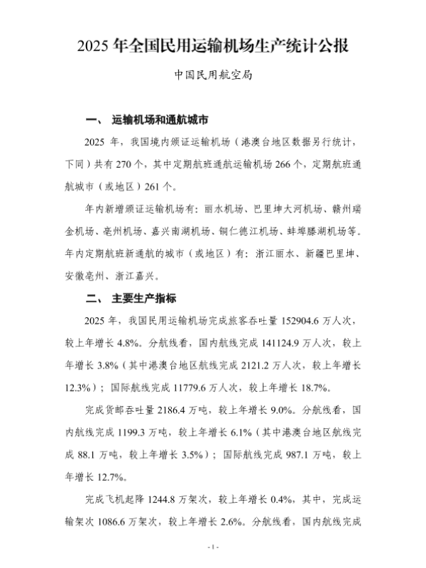 【中国民用航空局】【202503】2025年全国民用运输机场生产统计公报-5页 其他