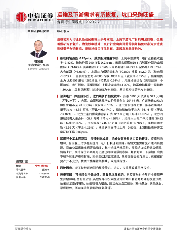【中信证券】【20200223】20200223-中信证券-煤炭行业周观点:运输及下游需求有所恢复,坑口采购旺盛-7页 行业研究
