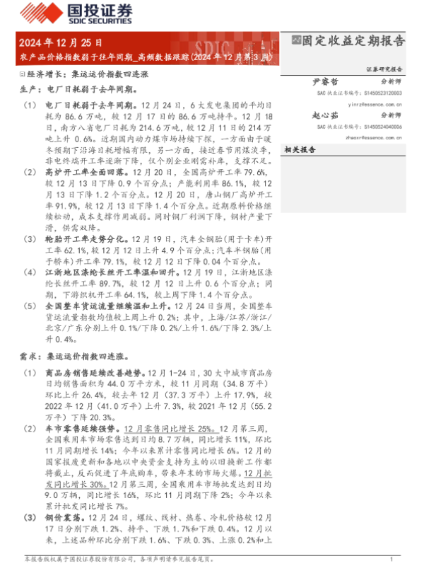 【国投证券】【20241225】高频数据跟踪(2024年12月):农产品价格指数弱于往年同期-15页 行业研究