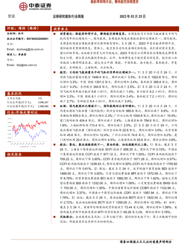 【中泰证券】【20230325】交运行业周报:新航季即将开启,静待航空持续复苏-36页 行业研究