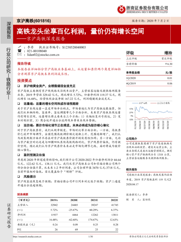 【浙商证券】【20200702】京沪高铁深度报告:高铁龙头坐享百亿利润,量价仍有增长空间-30页 行业研究
