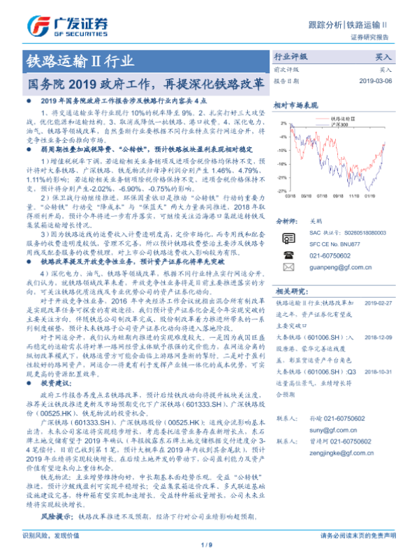 【广发证券】【20190306】铁路运输Ⅱ行业跟踪分析:国务院2019政府工作,再提深化铁路改革-9页 行业研究