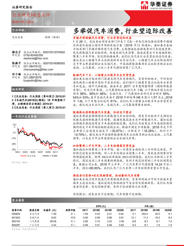 【华泰证券】【20190129】交运设备动态点评:多举促汽车消费,行业望边际改善-2页 行业研究