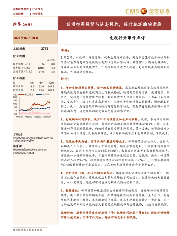 【海通证券】【20210209】免税行业事件点评:新增邮寄提货与返岛提取,提升旅客购物意愿-2页 证券期货研究报告